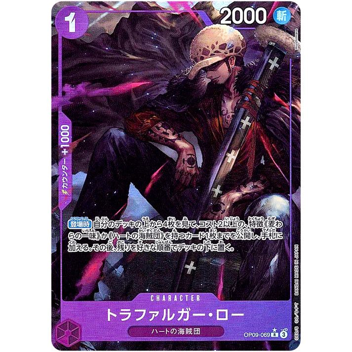 【登場時】自分のデッキの上から4枚を見て、コスト2以上の、特徴《麦わらの一味》か《ハートの海賊団》を持つカード1枚までを公開し、手札に加える。その後、残りを好きな順番でデッキの下に置く。