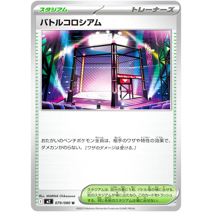 スタジアムは、自分の番に1枚、バトル場の横に出せる。別のスタジアムが場に出たなら、このカードをトラッシュする。同じ名前のスタジアムは場に出せない。