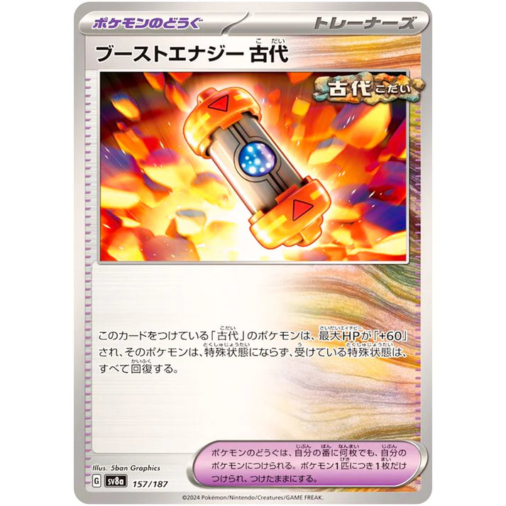 このカードをつけている「古代」のポケモンは、最大HPが「+60」され、そのポケモンは、特殊状態にならず、受けている特殊状態は、すべて回復する。