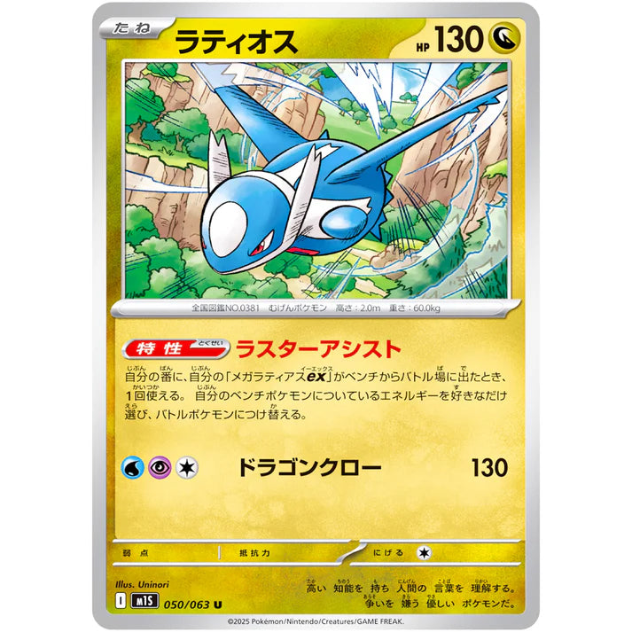 ラスターアシスト自分の番に、自分の「メガラティアスex」がベンチからバトル場に出たとき、1回使える。自分のベンチポケモンについているエネルギーを好きなだけ選び、バトルポケモンにつけ替える。